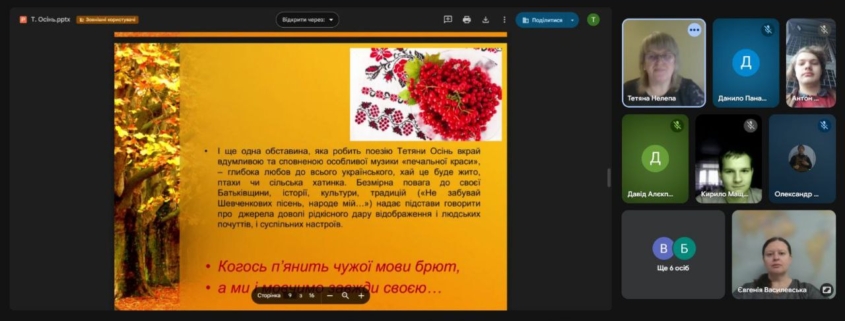 На цьому уроці учні ознайомилися з письменниками запорізького краю, зокрема зупинилися на творчому доробку Тетяни Василівни Нікулочкіної.