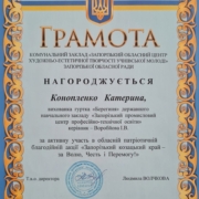 Конопленко Катерина гр.20/23 були нагороджені грамотами.