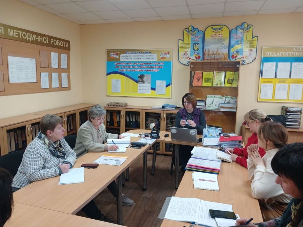 08.04.2026 року в ДНЗ «Запорізький промисловий центр професійно-технічної освіти» відбулося засідання методичної ради, на якому були підбиті підсумки проведення предметних тижнів будівельних професій та професії «Касир (в банку); оператор комп’ютерного набору», розглянуті, обговорені і схвалені заходи щодо проведення методичного тижня, його концептуальних основ та алгоритму реалізації. Окрім того, було здійснено моніторинг результатів атестації педагогічних працівників-членів методичних комісій у 2025/2026 н. р., проаналізовано рівень представлених на засіданні атестаційної комісії фахових надбань, які засвідчували зростання професійної майстерності педагогічних працівників.